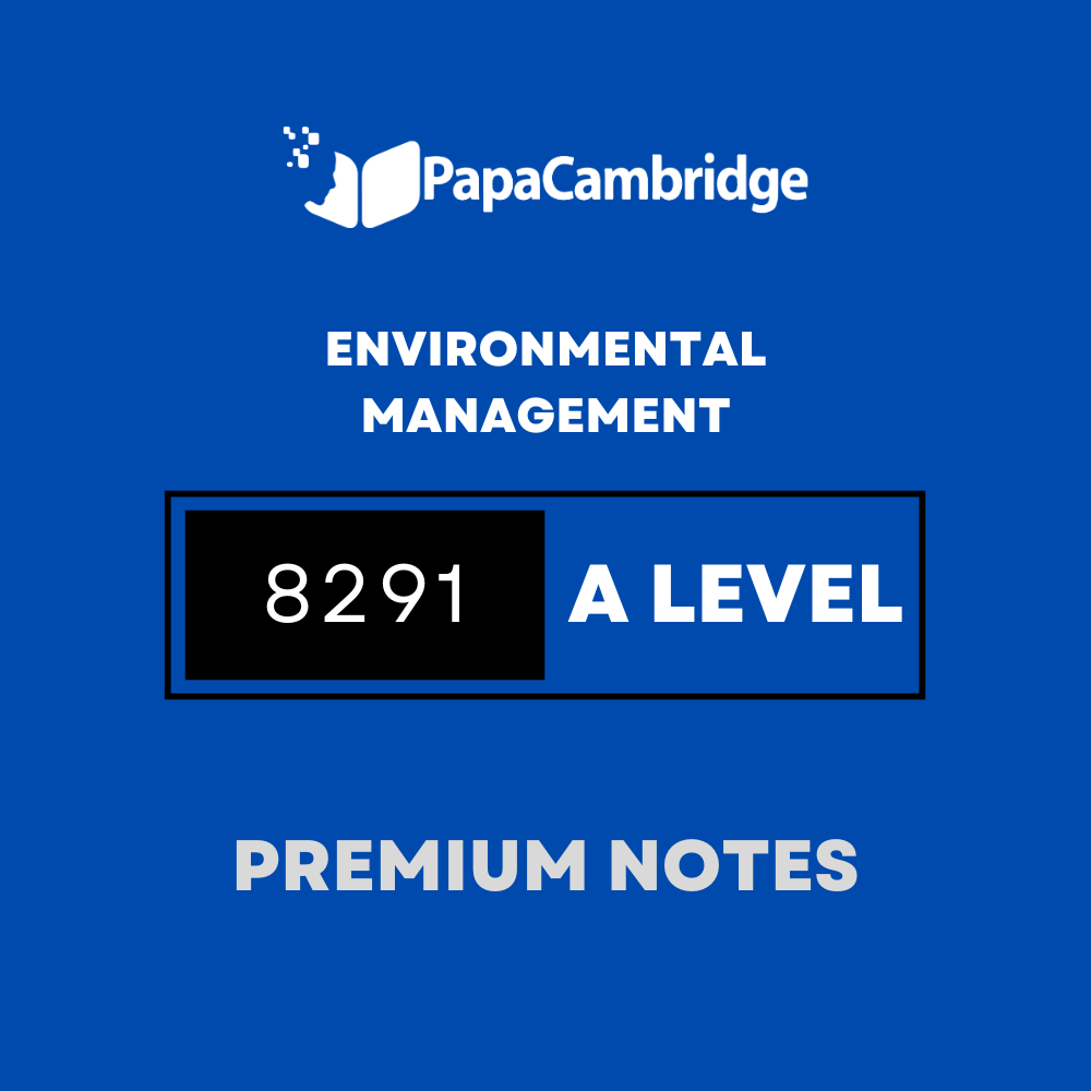 Our AS Level Environmental Management 8291 Revision Notes are created for students who want clear, reliable, and student focused study material. The content is organised to save time, reduce confusion, and support stronger understanding without making revision feel overwhelming. Papacambridge helps students revise with concise explanations, structured summaries, and naturally connected topic coverage that supports concept clarity and exam readiness. For learners searching for AS Level Environmental Management notes, Environmental Management 8291 revision material, and effective Environmental Management revision support, these notes provide a practical and easy to use resource.